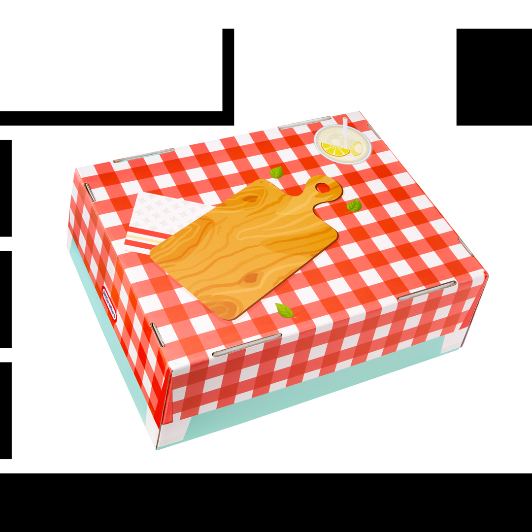 كما تتحوّل عبوة مجموعة البيتزا إلى طاولة لعب عند فتحها، لتوفّر مساحة عمل محمولة تتيح لطفلك الاستمتاع باللعب بشكل مستقل أو مع الأصدقاء.