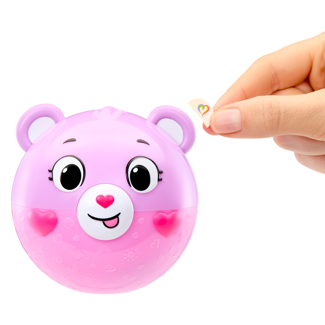 - Each adorable ball is shaped like a Care Bear face and comes with its own unique sticker badge on the ear, representing each adorable character.